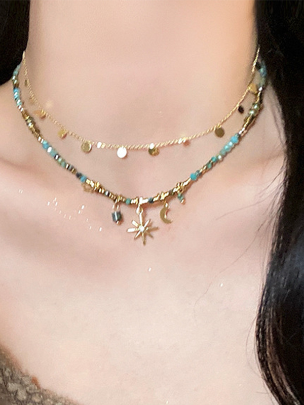 1pc Star Moon Vintage Double Layer Necklace