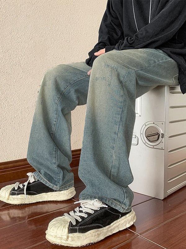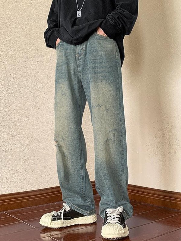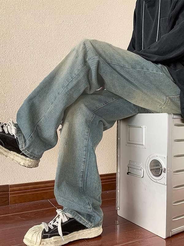 Description: These jeans featured slightly fray rips design on the leg, with multi belt loops, and has pockets detail at front& back.