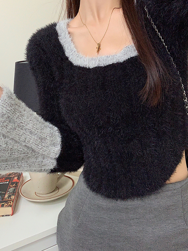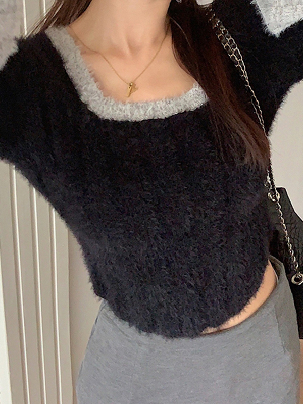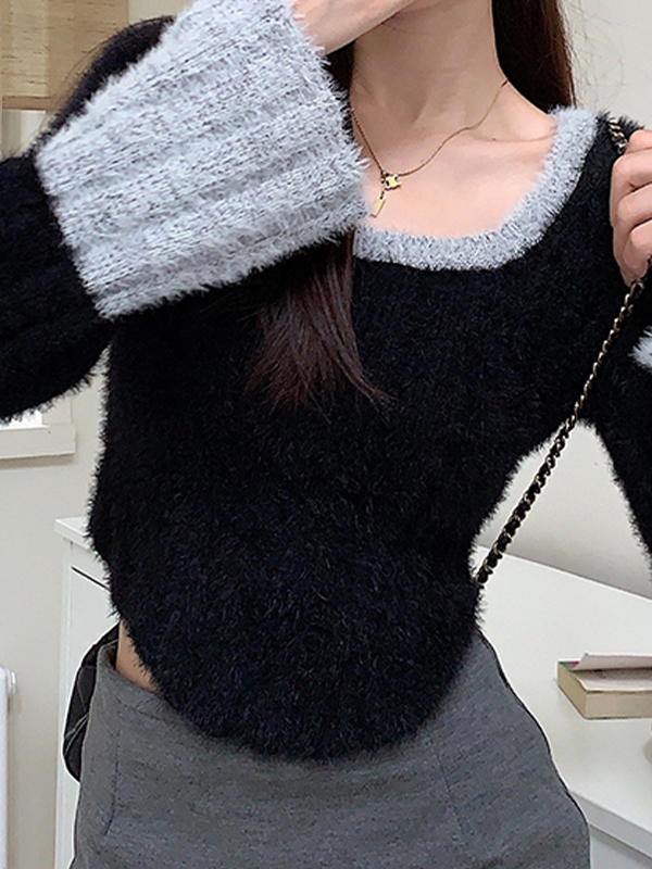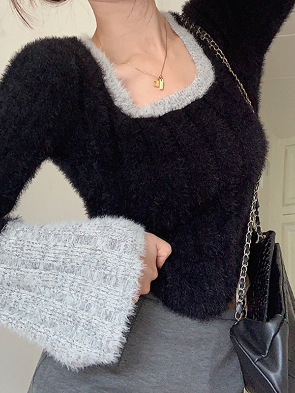 Be the first to review “Contrast Color Splice Trumpet Sleeve Slim Sweater”