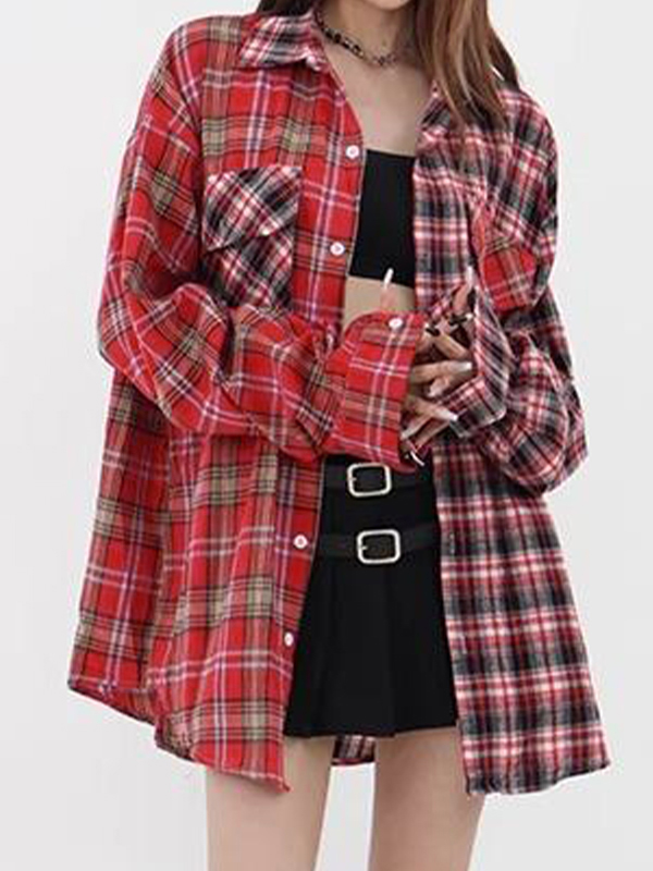 Vintage Plaid Splice Long Sleeve Blouse