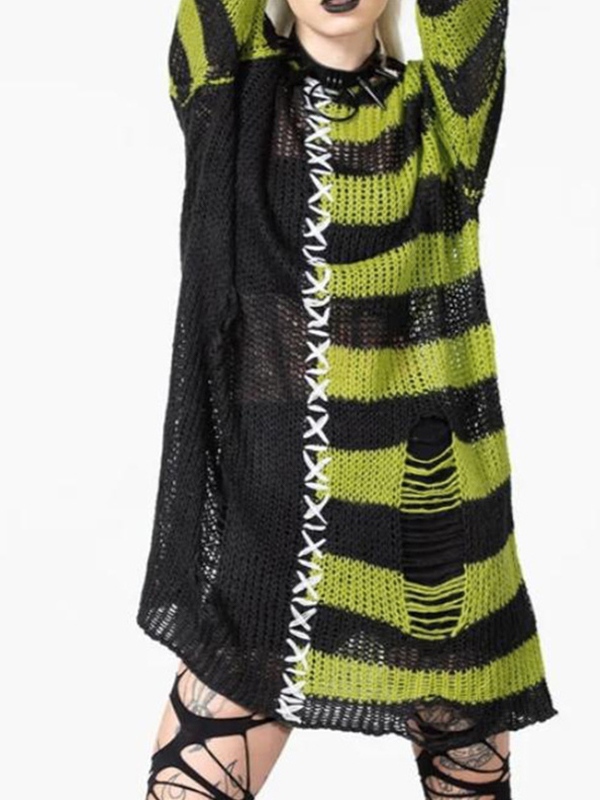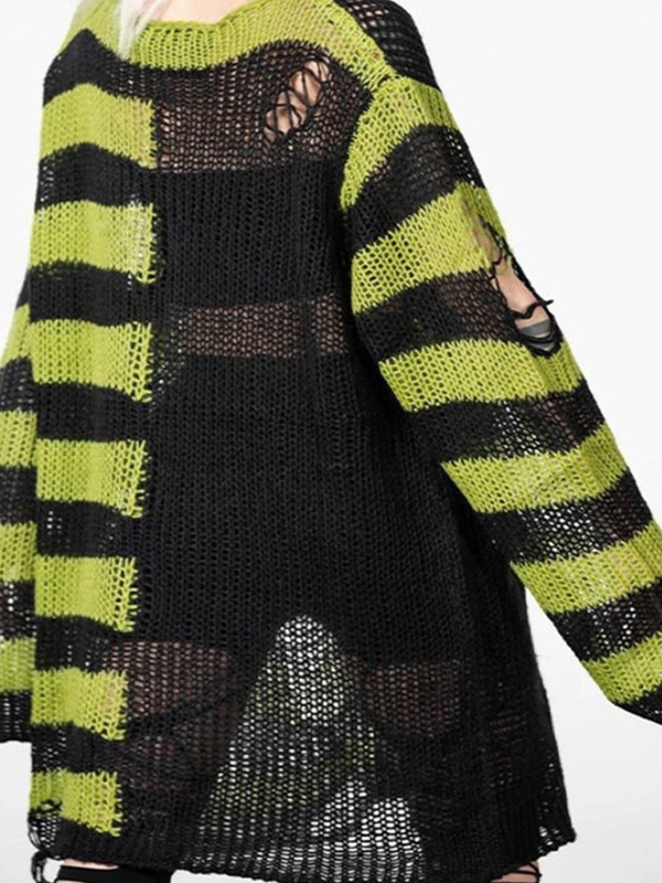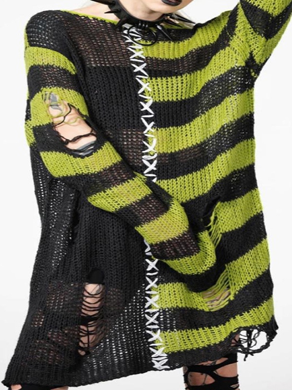 Punk Contrast Color Stripe Splice Ripped Crochet Top