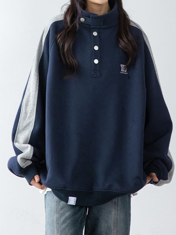 Men’s Color Block Splice Patch Decor Oversized Hoodie
