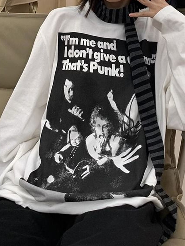 Vintage Portrait Print Oversized Long Sleeve Tee
