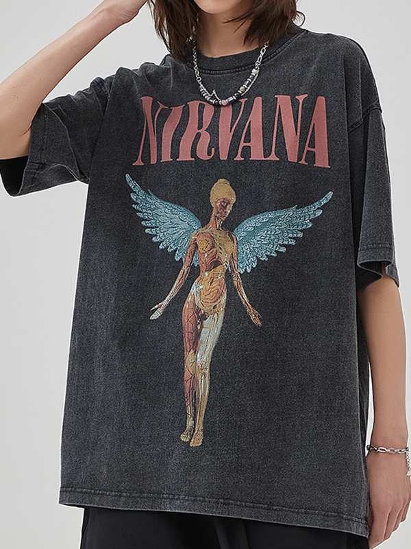 Flame Print Crew Neck Oversized Short Sleeve Tee